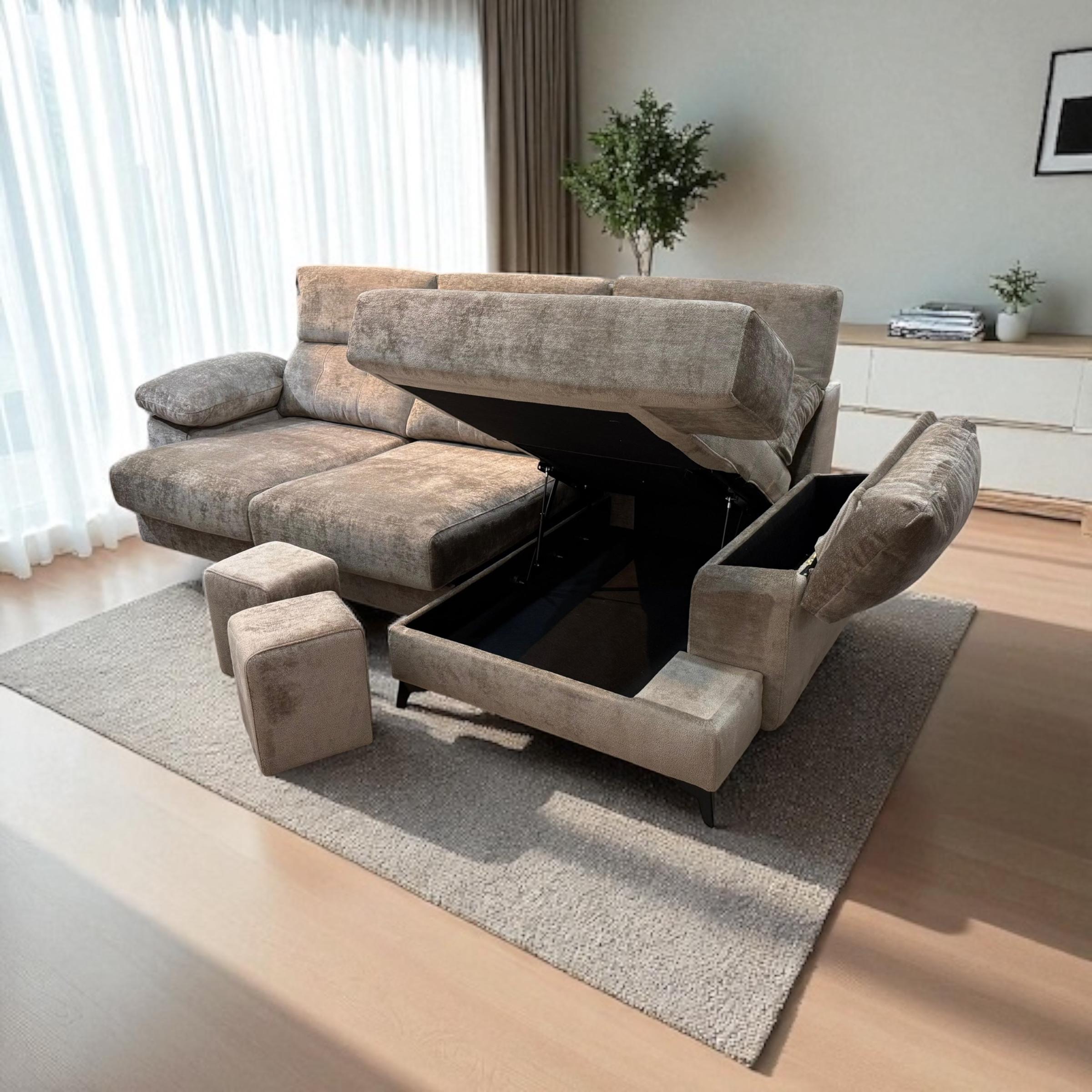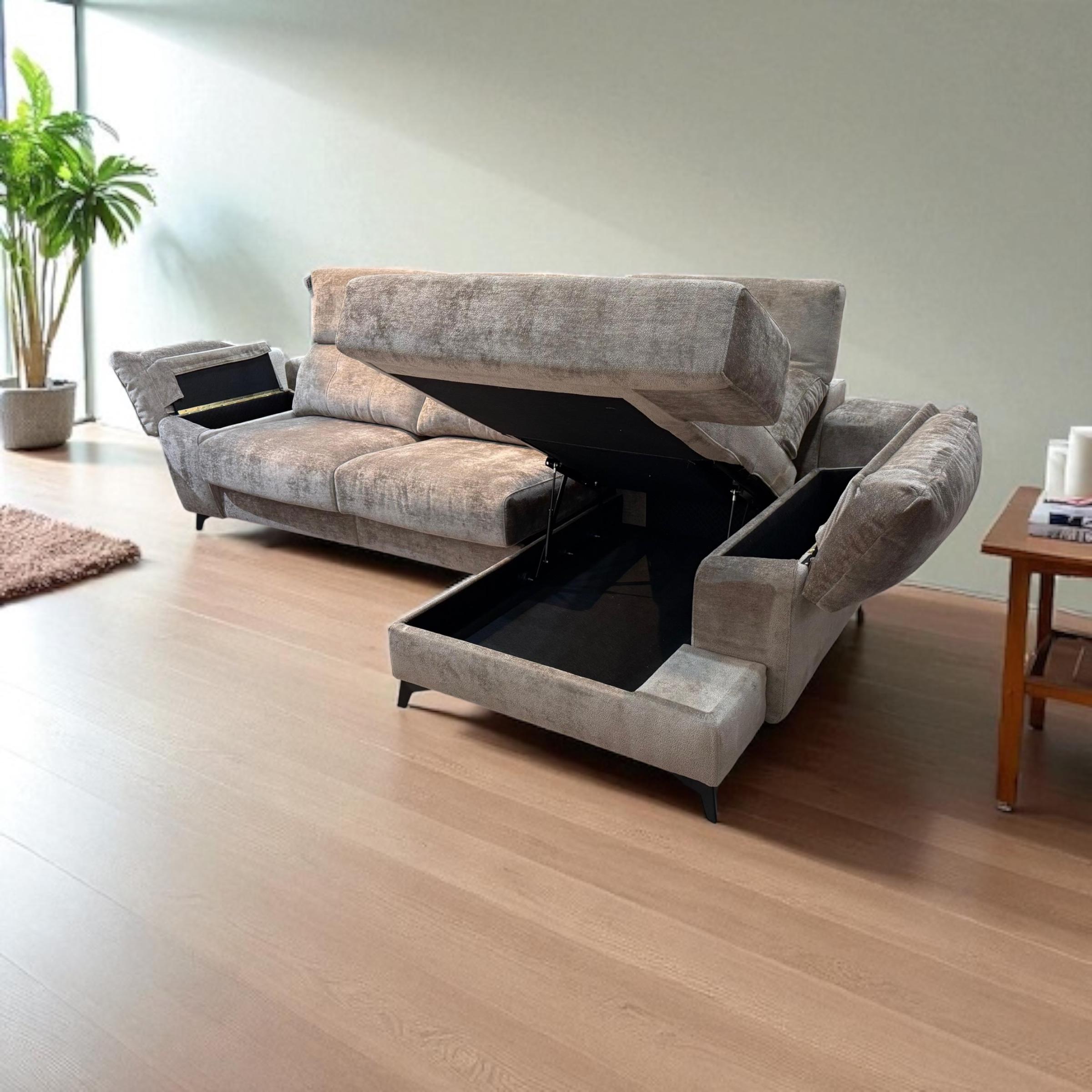 Un sofá robusto, funcional y elegante que transforma tu salón en un espacio práctico, ordenado y acogedor. Ideal para quienes buscan un sofá con alma de cama y espíritu de almacenaje.